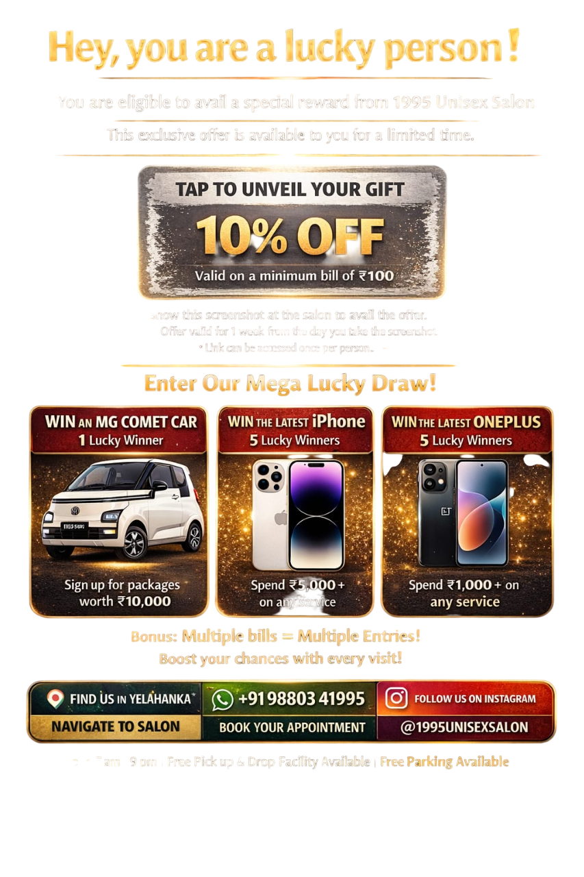 You are eligible to avail a special reward from 1995 UNISEX SALON.